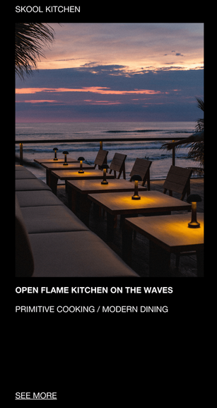 THE MENU IS CONCISE AND CONSIDERED, THE MUSIC CURATED, THE NIGHTS NOTORIOUS. EVERY DETAIL AND EXPERIENCE IS ORCHESTRATED TO OFFER A GREAT TIME FACING THE OCEAN.