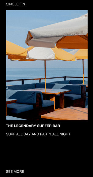 SUNSET, EATS, DRINKS, SURF, AND MUSIC SERVED OVER A DAYBED OVERLOOKING THE INDIAN OCEAN. A BLEND OF DAYTIME LOUNGING, INTIMATE DINNERS, AND INFAMOUS FRIDAY NIGHTS.